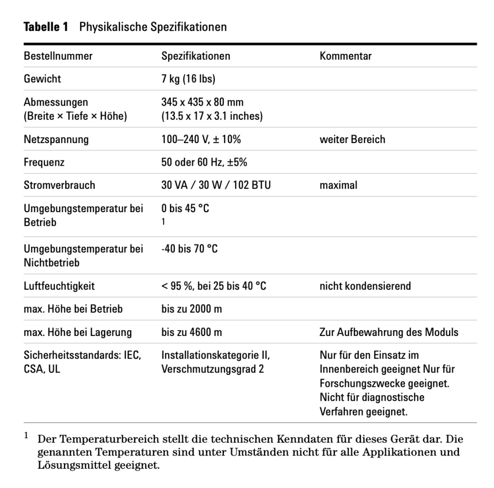 Die Agilent G1312B Binärpumpehat folgende technische Daten: Gewicht von 15,5
